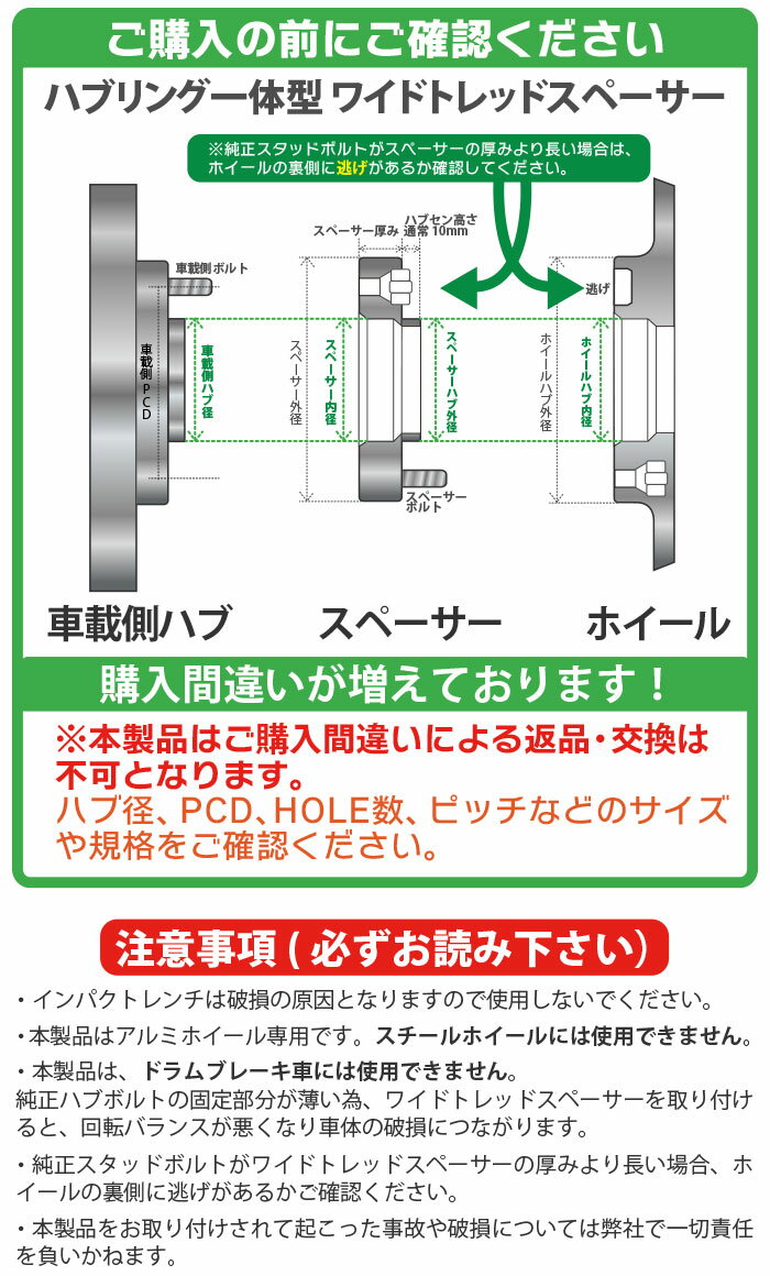 ・純正スタッドボルトがスペーサーの厚みより長い場合は、 ホイールの裏側に逃げがあるか確認してください。