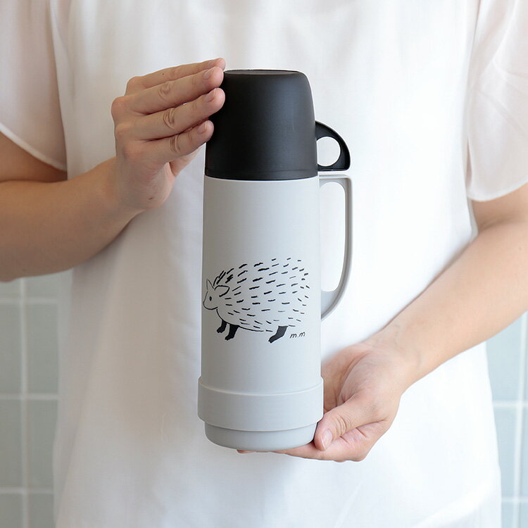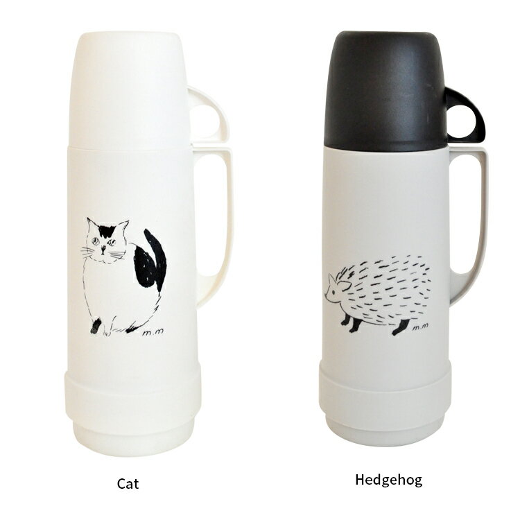 松尾ミユキ ウォーターボトル M【かわいい おしゃれ 水筒 マイボトル マイ水筒 ボトル コップ 500ml 蓋付き コップ付き 取手付き 保冷 保温 水分補給 シンプル 子供 子ども キッズ モノトーン アウトドア ピクニック レジャー ネコ 猫 ハリネズミ 動物 北欧 新生活 運動会】
