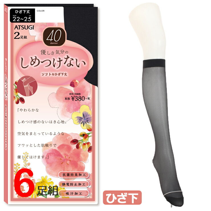 タイツ レディース ATSUGI しめつけない 40デニールひざ下丈(RS3822P)6足組 送料無料 アツギ タイツ ひざ下 ハイソックス 膝下 40デニール しめつけない タイツ レディース 抗菌防臭 静電防止 吸汗速乾 ひざ下 ハイソックス ストッキング(02680)